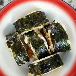 Leftover rice, seaweed ( appropriate amount ) | Cucumber, carrot, sausage ( one ) |