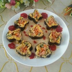 3.Mixed Spread the rice evenly on the sushi seaweed