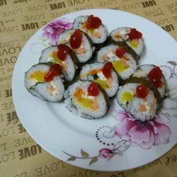 Vinegar The ingredients should be evenly distributed, including the rice.You can change the ingredients to your favorite ones.If there are no cucumber strips, you can leave them out, or cucumber strips can be used.Sushi soy sauce, salad dressing, and mustard can be added according to personal preference.