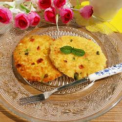 Add eggs and vegetables into the rice batter and mix well.Do not make it too dry, otherwise it will easily spread out during frying and become difficult to set.