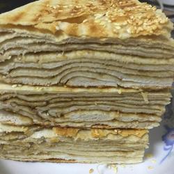 3. Deflate the dough, roll it out into a 3--5 mm thick dough, spread it evenly with sesame sauce, and sprinkle with White sesame.