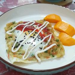 11. Put the potato cakes on a plate and spread a little tomato sauce.