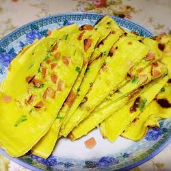 5.Put a flat-bottomed non-stick pan over medium-low heat and use a large spoon.Transfer to the pan, shake the pan and roll evenly into a round shape.Fry for a while, then flip and fry again and serve.(Because it is eaten in the morning, I usually spread it directly without adding oil.If it is a pot that is usually stained, I need to pour some oil)