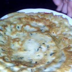 3. Add the chopped leeks and stir to make it as thin as possible and mix well to form a thick paste.The shape is usually sticky but it doesn’t matter