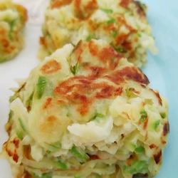 6.Hot the pot and let it cool.Pour the oil into the batter and make pancakes