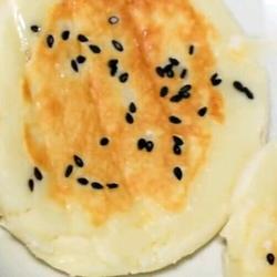 • Illustration of making oil-free glutinous rice cakes 66.Sprinkle black sesame seeds and wait until the cake is set and turn over