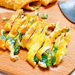 4. Roll up the egg pancake, simmer for 30 seconds, and remove from the pan.