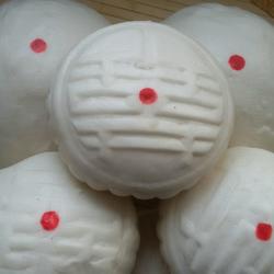 3. After kneading, squeeze out a few dough balls, knead them into a round shape, squeeze the dough into a mooncake mold, press it dry and release it from the mold.(Use wooden mooncake mold,).