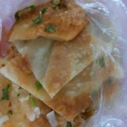 4. Roll up the round pancake and flatten it, heat the pan oil, put the cake into