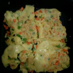 3. Mix together diced green pepper and diced carrot, add two eggs, and stir evenly p>