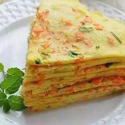2.Eggs Beat the eggs into liquid, add the flour, stir to form a paste, add the fried shredded carrots and chopped green onions, add an appropriate amount of salt, and stir evenly again;