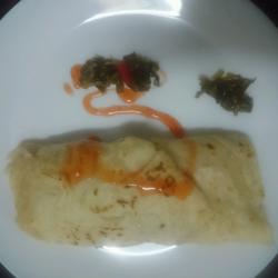 4. Brush some oil on the cake, add chopped green onion and eggs, and add some sweet and spicy sauce You can eat it