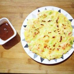 3.Pour a little cooking oil into the pot, scoop out a spoonful of batter and spread it out.Fry until both sides are golden brown.