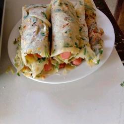 Ham sausage, zucchini, leek pancakes ( Four ham sausages, appropriate amount of zucchini, eight leek pancakes ) | Peanut oil, salt, oyster sauce ( appropriate amount ) |