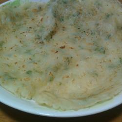 1.Pour an appropriate amount of flour into a large bowl.Add water and stir clockwise.When it becomes a paste, add the chopped green onion and stir in a clockwise direction.