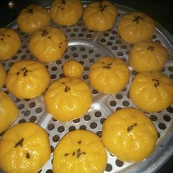 3. Knead into a small ball, use a toothpick to press some flower shapes on it and place it on the steamer grid