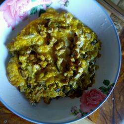 4.Put the chopped mushrooms into the egg bowl and add some salt
