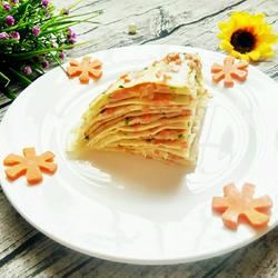 8.Cut the fried pancakes with a cross knife and place them on the plate