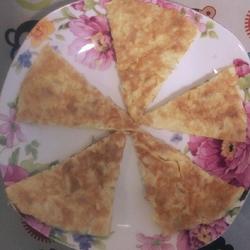 3. Heat the pan Add oil, pour the egg liquid and fry over medium heat until golden brown, turn over and continue frying until golden brown.