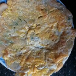 6.Pour in the batter and fry until golden brown.Add an egg and fry until golden brown on both sides
