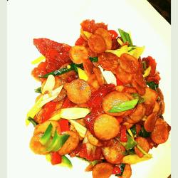 Green garlic seedlings ( Two plants ) | Green and red pepper rings ( A few ) |