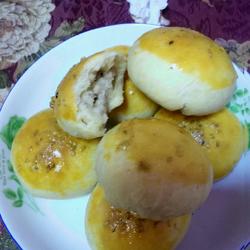 4. Wrap with sugar pastry, Brush the surface with egg yolk, sprinkle with sesame seeds, put it in the oven at 180 degrees for 15-20 minutes, brush with egg yolk every ten minutes!