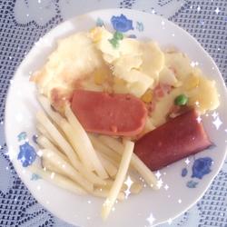 Carrot cubes ( a small amount ) | Ham ( 1 root ) |