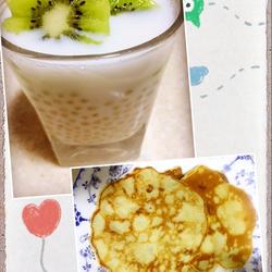 Sago, milk (or coconut milk), honey (or rock sugar), and fruit (this depends on personal preference) Banana, eggs, flour, sugar, milk, salt (you can add rum if you want a better taste)