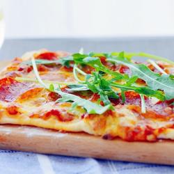 7.The oven can be adjusted to 240 degrees at this time Warm up.Take a piece of dough, sprinkle some flour on the cutting board to prevent the dough from sticking, and use a rolling pin to roll it into the shape you want.Because we are making thin-crust pizza, the dough is rolled out very thin so that it is crispy and delicious when baked.In order to highlight my professionalism and uniqueness, I specially rolled it into a square shape.Of course, the final result once again proved that the gap between reality and ideal is just that big.