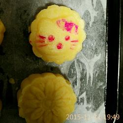4.Use flour, olive oil and butter to make the crust, use a mold to make the filling and put it on the baking sheet