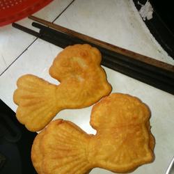 3.Put the stuffing in Put it into the dough, and then place it in the mold to print the shape of the fish