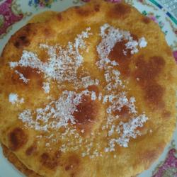 3.Bake one and sprinkle sugar on it, then put the baked cake on top, then sprinkle sugar again, and stack them one after another until the baking is completed.