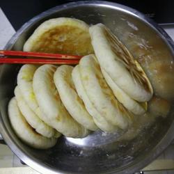 2. Roll out the dough into a thicker wrapper like a dumpling wrapper.