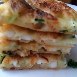 2.Put a little in the pot Oil, put the mixed squid cake ingredients into the pan and fry it.I used a grinder so the cakes are round.
