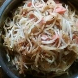 How to make fried pancakes with mung bean sprouts, sausages and shredded pancakes