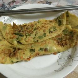 3. Heat oil in a pan, slowly pour it into the pan, and form into a cake shape.Turn over after setting.After both sides are formed, you can go abroad.