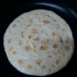 3.Add powder paste Put it on the pan, spread it out quickly, turn it over and fry again after frying.When it is almost fried, you can add some oil and fry on both sides again.It will be fragrant and beautiful