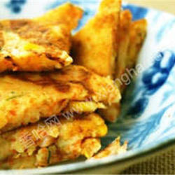 4. Add oil to the pan and heat it up.Cover the batter and simmer for a few minutes.Be sure to use low heat.After the batter is formed, turn it over and fry until the inside is crispy