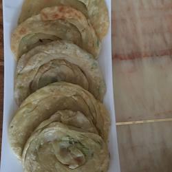 Flour ( One pound ) | minced green onions ( a small bowl with oil ) |