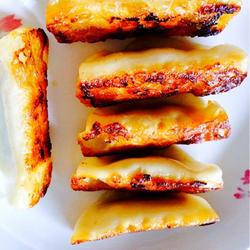 5. Take out the dumpling skin, wrap it with meat filling, and serve as an electric cake Heat, pour an appropriate amount of oil, and arrange the pot stickers in the electric pancake in an orderly manner, about 3 minutes