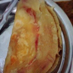 7. Spread tomato sauce on the cake, add as much as you like.Put the eggs and ham on it