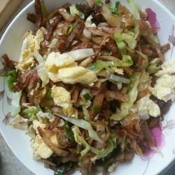 1. Scramble the eggs until they are medium-cooked.The oil should not be too hot, as it will become stale easily