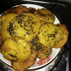 4.Knead into a round shape, flatten, and dip in sesame seeds