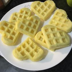 10. Just heat it up in the oven for a while the next morning and it will be crispy on the outside.The soft waffle inside is done.The one in the upper left corner is baked for 1 minute, and the others are baked for 30 seconds