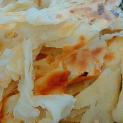 5. Roll the dough into a thin flatbread and spread it with puff pastry ( It is conducive to the layering of the noodles), chopped green onion, salt, thirteen spices