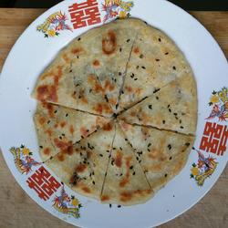 3. Preheat the electric pancake stall with oil.Dip your hands in oil, take a ball of dough, roll it into a ball and flatten it.Then put the pancake stall on and start baking.(When kneading the dough, you can also oil it and add sesame seeds.Fold it a few times and it will look like a layer cake.)