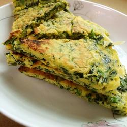 9. After frying patiently over low heat for 2 minutes, the egg pancake will be cooked and cut into pieces.You can eat it in the shape you want!