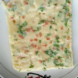 1.Add an egg to the flour and a little diced ham, and add a little salt to the green vegetables to make a batter