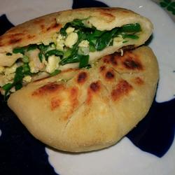 2.Knead the dough and divide it equally.6 pieces, roll out and stuffing.(I knead it like a bun, and then press it into a cake)