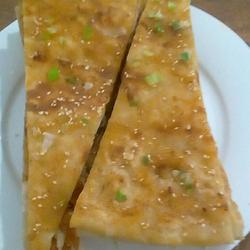 4.Put it in the pot When the bottom changes color, sear it, then flip it over and spread with sesame sauce and chopped green onion